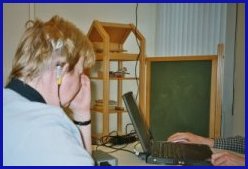 An kon ik wonderwel meteen verstaan......ECHT WAAR !! Ik kreeg alleen de slappe lach. Ze sprak net als Mickey Mouse........ik zelf trouwens ook hoor.J De stem van Emile klonk hetzelfde als die van An, daar kreeg ik weer de slappe lach van. Hij had een vrouwenstem ook met mickey mouse toontje en alles klonk ééntonig. Het klonk allemaal als .....mieehmiehmiehmiehmie......... Als ik het mondbeeld er bij zag dan kon ik er woorden uithalen. Zonder mondbeeld bakte ik er niks van en klonk alles dus als .....mieehmiehmiehmiehmie......... Ik vond het zelf al heel wat dat ik al iets kon horen, had daar echt niet op gerekend. Ik had verwacht een krakerig, stotterig soort stroomstoot te gaan voelen/horen ........ echt niet dus!