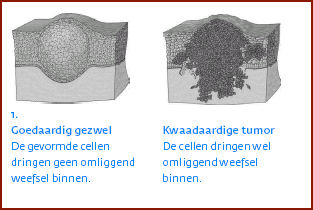 Er zijn goedaardige en kwaadaardige gezwellen of tumoren.