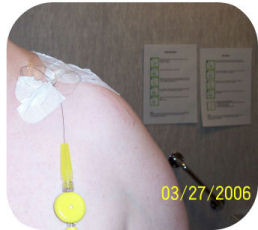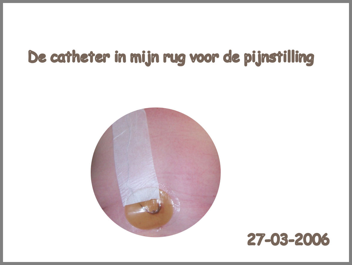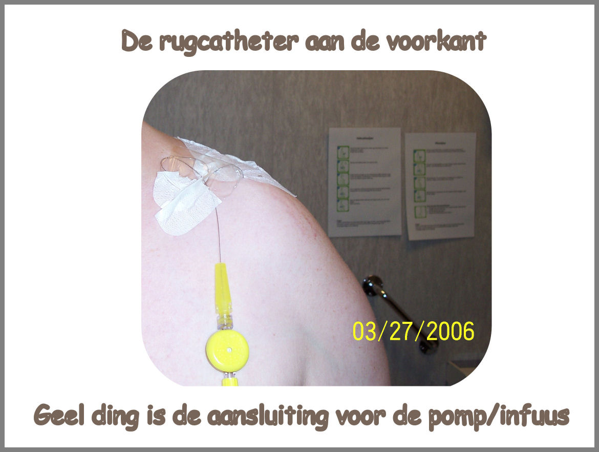 Verder een wonddrain, blaaskatheter en de rugkatheter/pijnpomp.