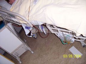 Ik ben na een tijdje toch weer ingedommeld en werd om 6 uur weer wakker door het licht van de zaklamp van de nachtzuster die mijn katheterzak leeg kwam maken.