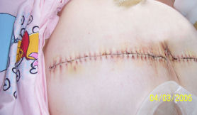 Ik heb uitgelegd dat het via de rug niet kan en dat ze het zo via de buik doen omdat ze goed moeten kunnen zien dat ze alle tumorweefsel weg halen.